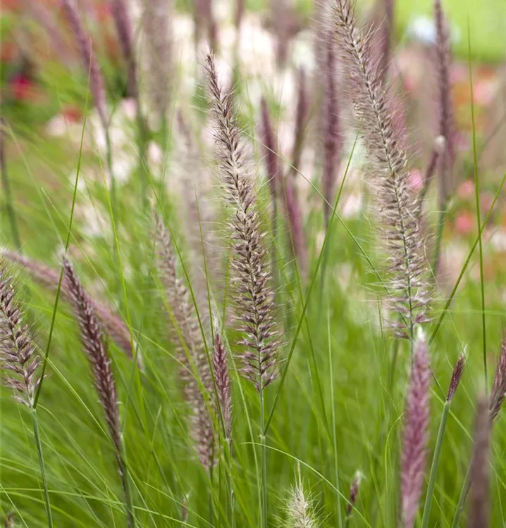 Das Federborstengras (Pennisetum setaceum) ist mit seiner mittelgrünen Blattfärbung ein dekoratives Gestaltungselement im Garten, welches sich an einem sonnigen Standort mit einem möglichst durchlässigen, nährstoffreichen Boden am wohlsten fühlt. Die hellrosafarbenen Blütenwedel schmücken die buschig wachsende Pflanze ab Sommer. Bei günstigen Bedingungen erreicht dieses winterharte Gras eine Höhe von ca. 65 cm und wird bis zu 50 cm breit.