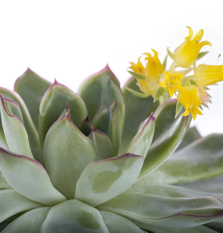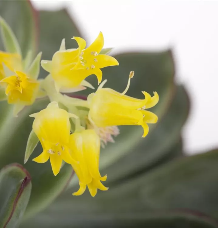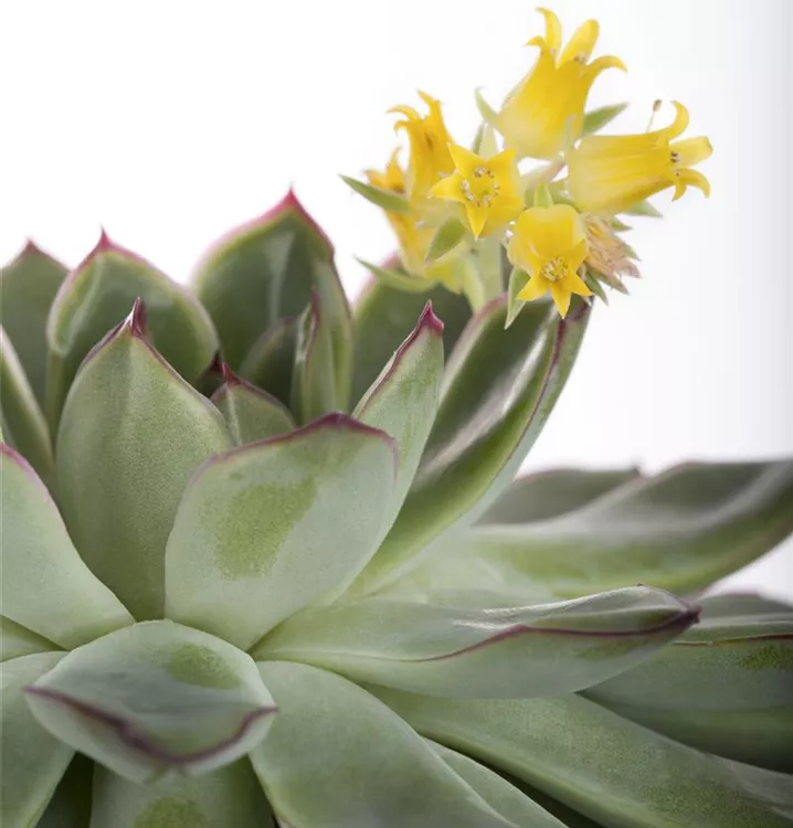 Die Echeverie (Echeveria) ist eine Pflanze mit mittelgrünen, grau-grünen, dickfleischigen Blättern. Die glockenförmigen Blüten erscheinen von Februar bis März. Diese rosettenartige Pflanze gedeiht am besten an einem sonnigen Standort.