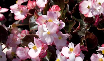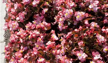 Die Eis-Begonie (Begonia semperflorens) ist eine beliebte Pflanze für den Balkon. Die unzähligen Blüten erscheinen, je nach Sorte, in verschiedenen Farben die ganze Saison hindurch. Ein sonniger bis halbschattiger Standort und ein durchlässiges Substrat werden bevorzugt.