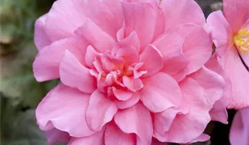 Die Knollenbegonie (Begonia x tuberhybrida) bringt ansehnliche, rosafarbene, gefüllte Blüten von Juni bis November hervor. Bevorzugt wird ein durchlässiger, nährstoffreicher Boden in halbschattiger Lage. Die buschige Staude erreicht gewöhnlich eine Höhe von 20 - 30 cm und wird bis zu 30 cm breit.
