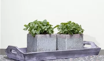 Zum Verzehr geeignet. Die hellgrünen, gesägten Blätter sind eiförmig und überzeugen mit aromatischem Geschmack.
