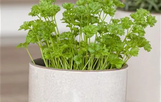 Die Krause Petersilie (Petroselinum crispum) ist eine Kräuterpflanze mit einem aromatischen Geschmack. Ihre dunkelgrünen Blätter sind gefiedert und gewellt. Für das optimale Wachstum der Krause Petersilie werden ein sonniger Standort und durchlässiger, nährstoffreicher Boden benötigt.