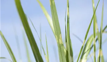 Hoher Blattschmuckwert. Die sommergrünen Blätter des Garten-Zebraschilfs sind gelb-grün, lineal.
