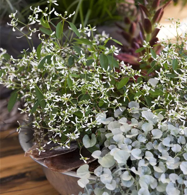 Der Euphorbie (Euphorbia hypericifolia) ist eine weiß blühende Pflanze. Diese buschige Pflanze gedeiht am besten an einem sonnigen bis halbschattigen Standort.