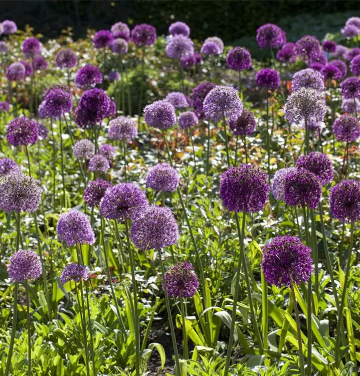 Die violetten Blüten des Riesenlauch erscheinen in Dolden von Juni bis Juli.