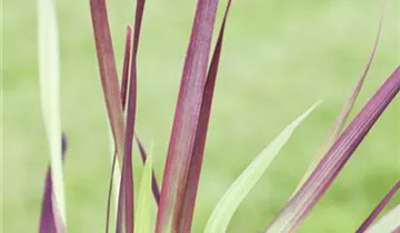 Die sommergrünen Blätter des Garten-Blutgrases 'Red Baron' sind grün-rot, lineal. Garten-Blutgras 'Red Baron' zeigt sich leuchtend rot im Herbst.