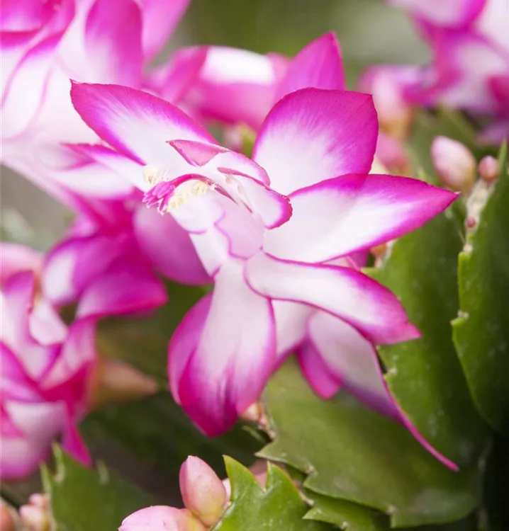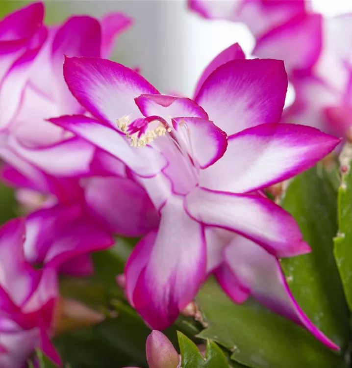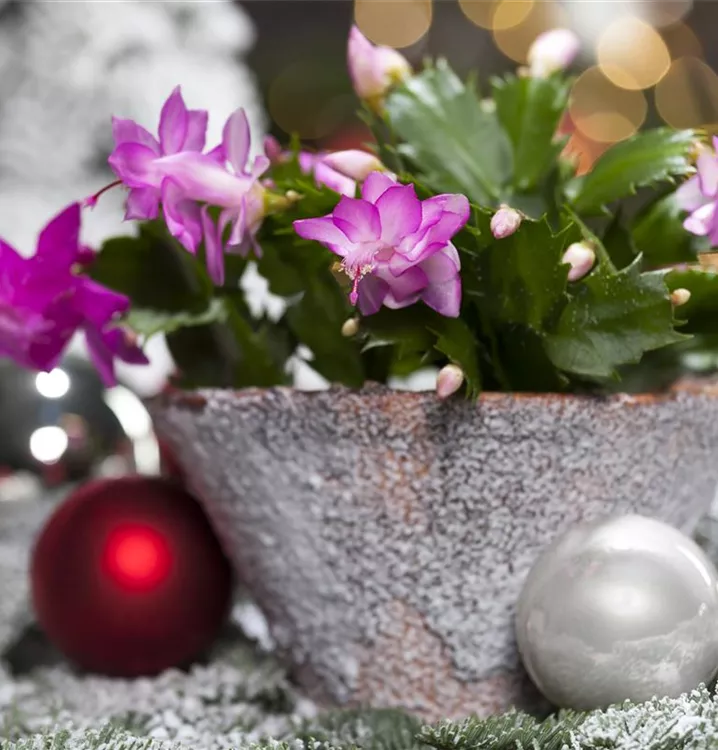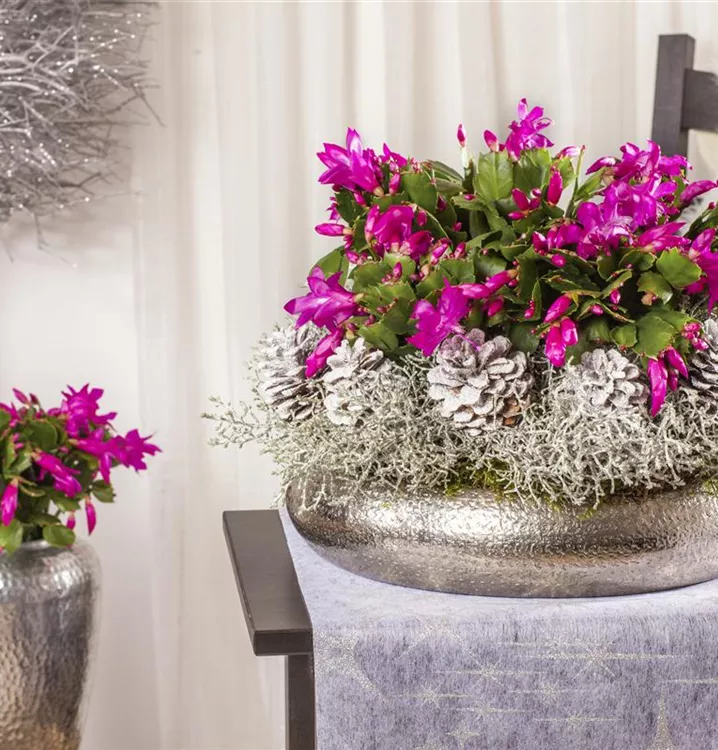 Der Weihnachts-Kaktus (Schlumbergera bridgesii) ist eine Pflanze mit dunkelgrünen, dickfleischigen Blättern. Diese aufrechte Pflanze gedeiht am besten an einem sonnigen bis halbschattigen Standort.