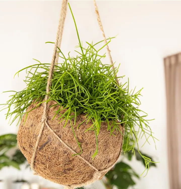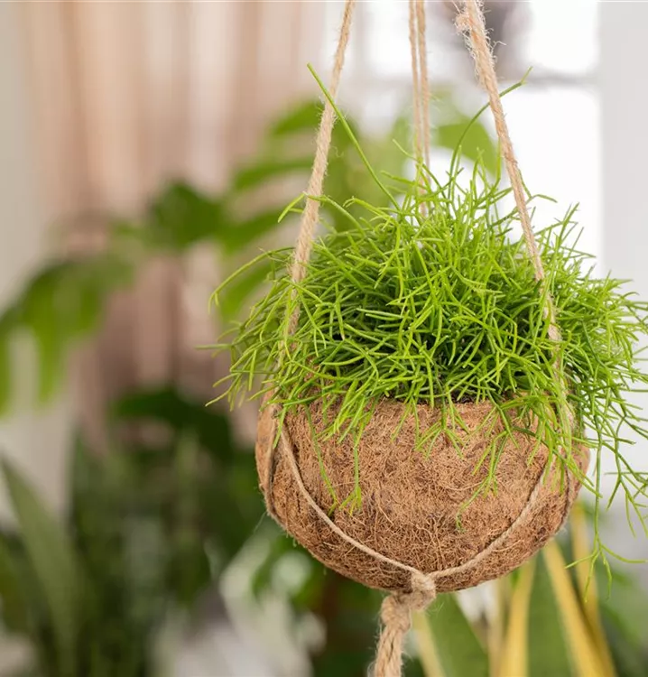 Der Binsenkaktus (Rhipsalis baccifera) ist eine Pflanze mit hellgrünen, dickfleischigen Blättern. Die radförmigen Blüten erscheinen von April bis Juni. Diese überhängende Pflanze gedeiht am besten an einem halbschattigen Standort.