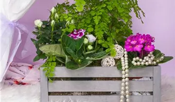 Die Falsche Gloxinie (Sinningia speciosa) blüht über Monate hinweg. Je nach Sorte, erscheinen die dekorativen Blüten in den Farben Rosa, Rot, Violett und Zweifarbig. Die matten, eiförmigen Blätter sind gekerbt. Bevorzugt wird ein heller Standort und eine durchlässige Erde.
