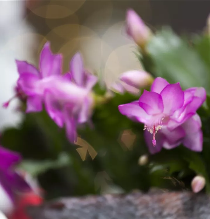 Der Weihnachtskaktus (Schlumbergera bridgesii) ist eine Pflanze mit dunkelgrünen, dickfleischigen Blättern. Diese aufrechte Pflanze gedeiht am besten an einem sonnigen bis halbschattigen Standort.