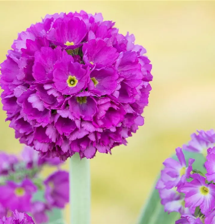 Die Kugelig blühende Schlüsselblume (Primula denticulata) ist eine aufrechte Staude, die von März bis Mai violette, ballförmige Blüten bildet. An einem sonnigen bis halbschattigen Standort mit durchlässigem, nährstoffreichem Boden erreicht sie gewöhnlich eine Höhe von ca. 30 cm und wird ca. 20 cm breit. Die Kugelig blühende Schlüsselblume ist gut frostverträglich.
