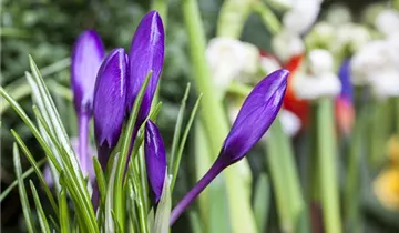 Der Frühlings-Krokus (Crocus vernus) blüht über Monate hinweg. Je nach Sorte, erscheinen die dekorativen Blüten in den Farben Weiß, Gelb, Blau und Lila. Bevorzugt wird ein sonniger bis halbschattiger Standort und eine durchlässige Erde.